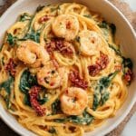 Keywords: Tuscan shrimp linguine, creamy shrimp pasta, garlic shrimp pasta, sun-dried tomato pasta, spinach linguine, Italian shrimp recipe